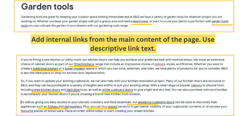 As you can see, their category pages have unique content with descriptive link text.
