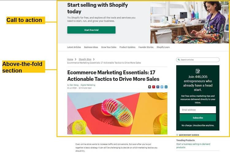 For example, the above-the-fold (ATF) section of a blog page will have a featured image, heading, and introduction.
