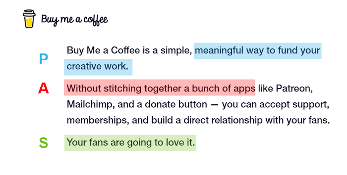 P (problem) → A (agitate) → S (solution) is one of the most popular copywriting frameworks.