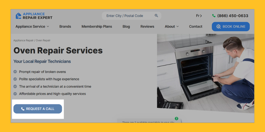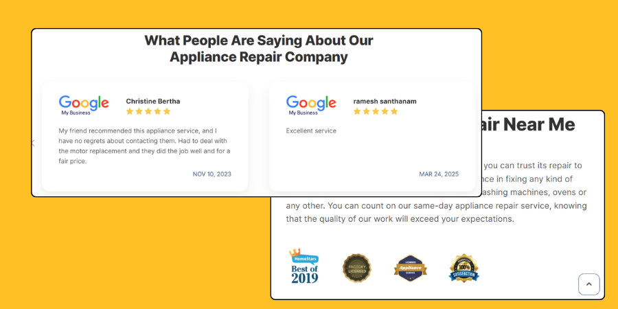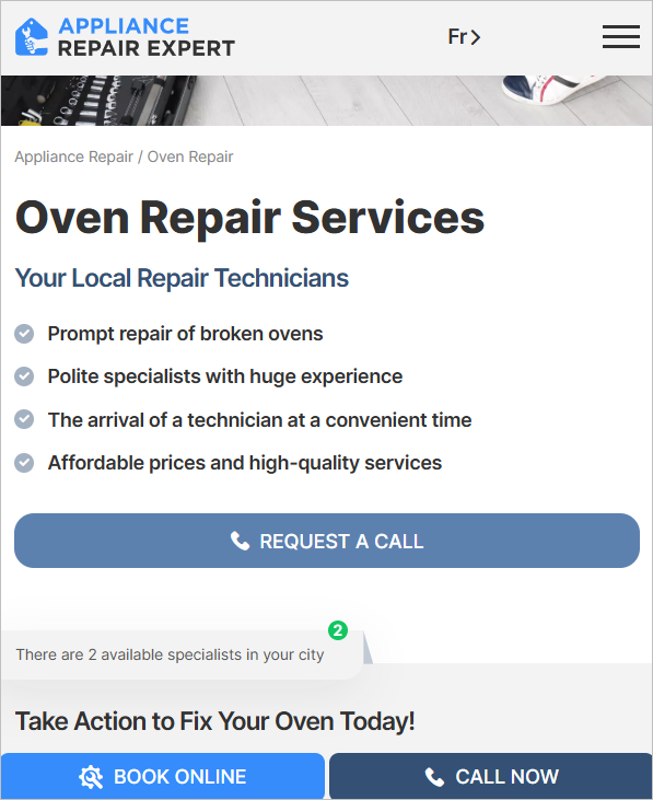 Appliance repair service (homepage)