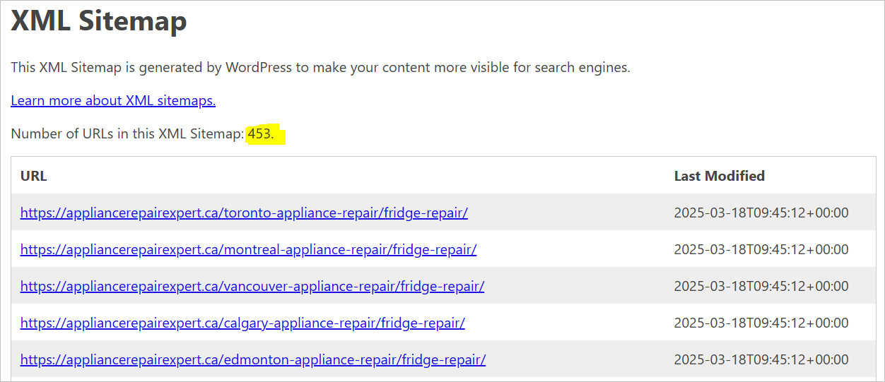 A total of 453 regional pages have been created for secondary services + location variations 🤯.