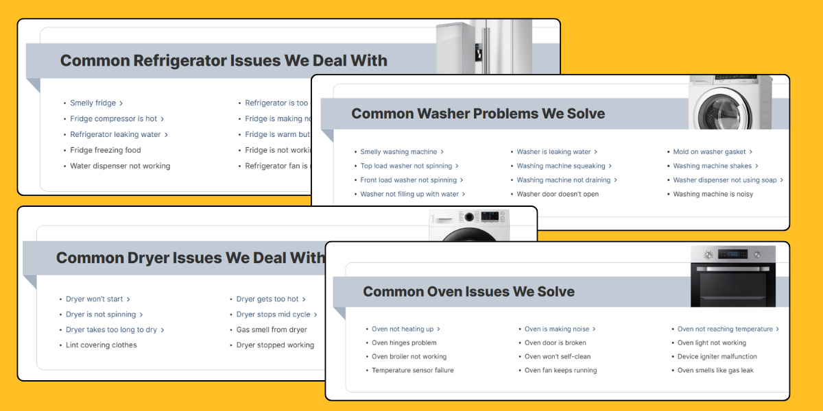 They wrote helpful articles about common appliance challenges and linked them from service pages and vice versa.