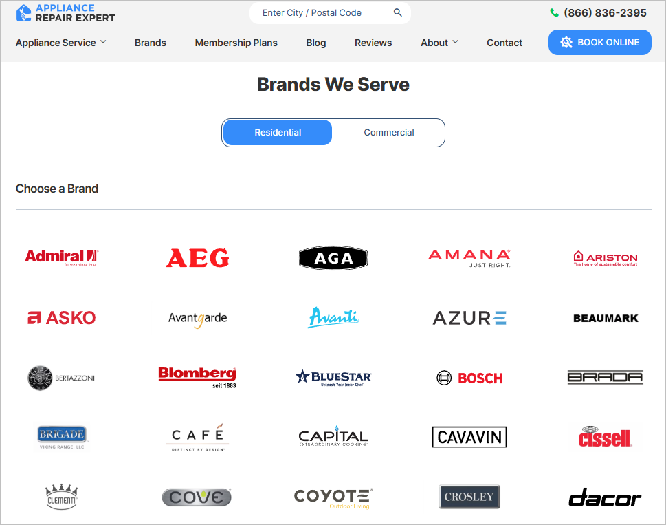 Appliance repair expert (partial match domain) is an appliance repair service provider in Canada across 138 locations.