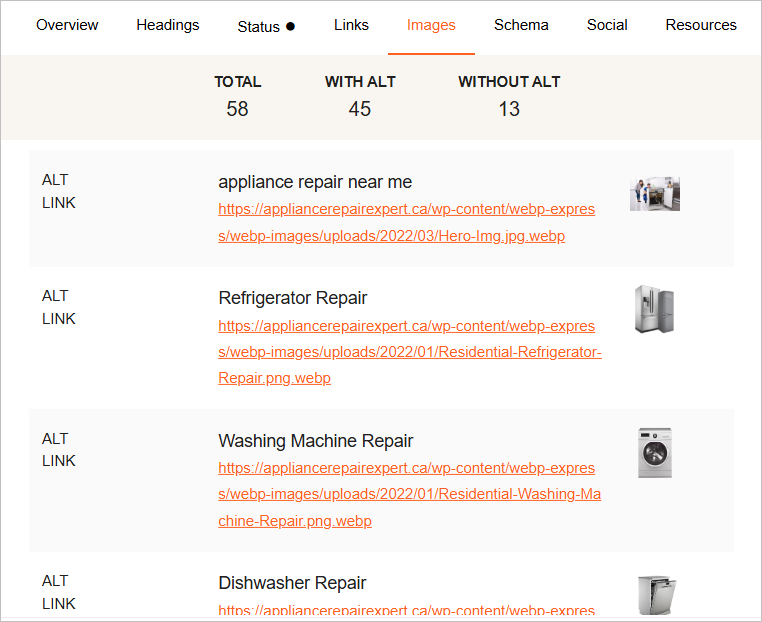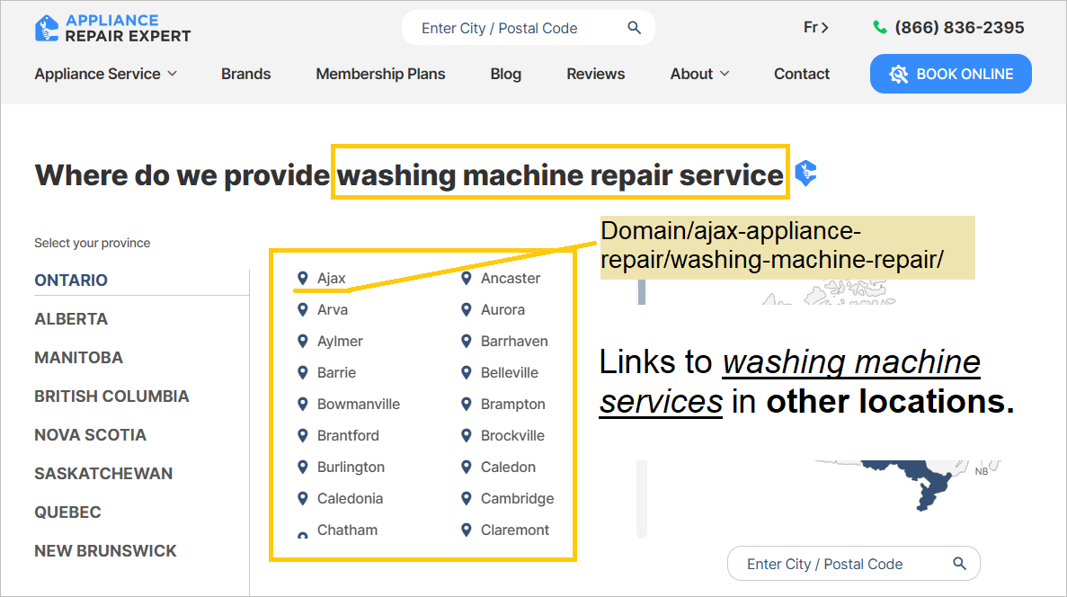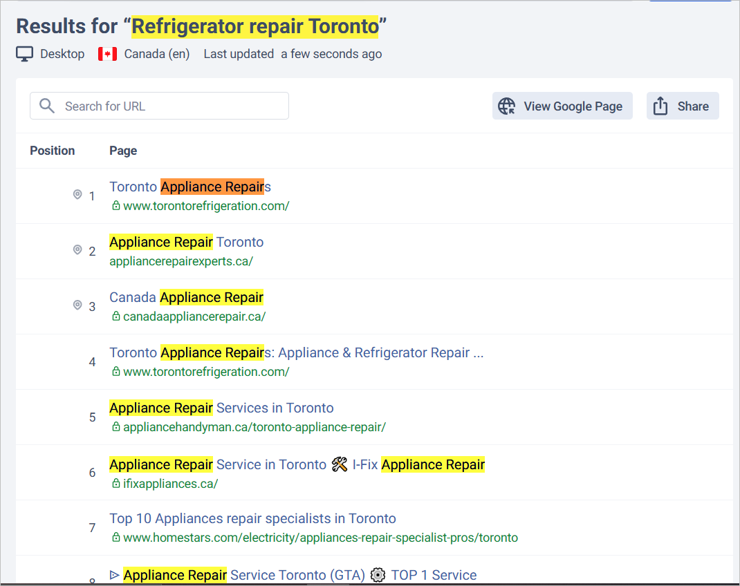 You’re most likely to see the ‘Toronto appliance repair service’ page ranking for these keywords.