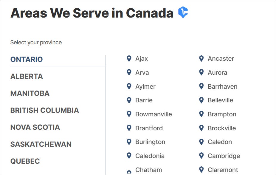Service is available in 100+ areas in Canada